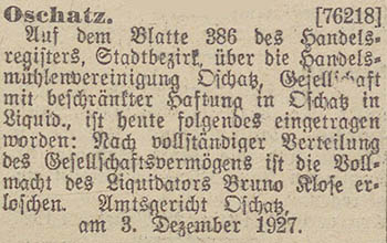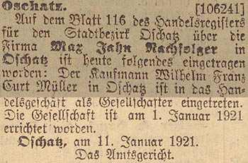Koch, beide in Oschatz. Die Gesellschaft ist am 1. Januar
