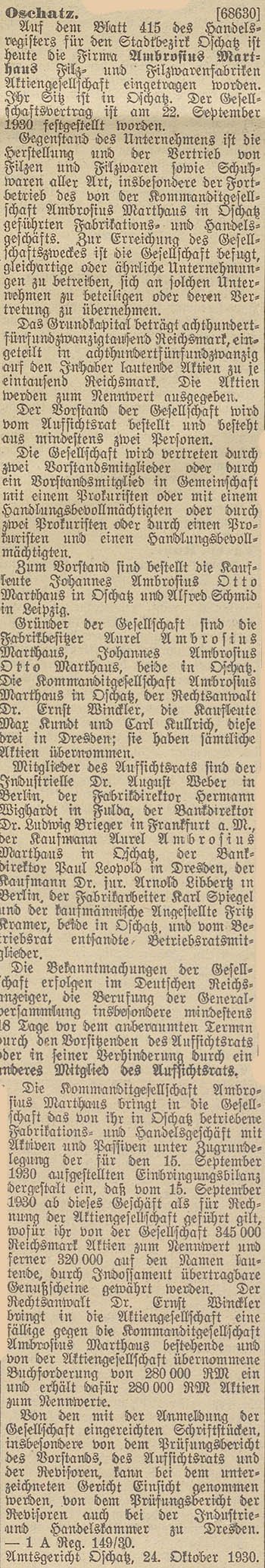 Marthaus in Oschatz geführten Fabrikations- und