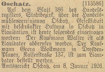 Kaufmann Wilhelm Emil Vollert in Oschatz eingetreten. Die