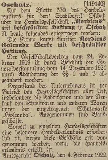 Gesellschafter vom 21. April 1920 und 3. Februar 1921 laut