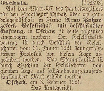 durch Beschluss der Gesellschafter vom 31. Januar 1921