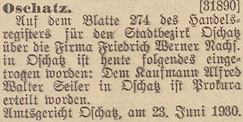 1930: Der Kaufmann Dr. Julius Graser in Oschatz ist zum