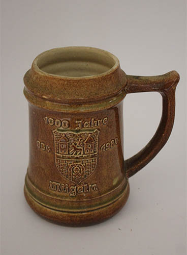 ERINNERUNGSKRUG „1000 JAHRE MÜGELN“ Hergestellt bei Keramik MügelnSammlung: Dr. Manfred Schollmeyer