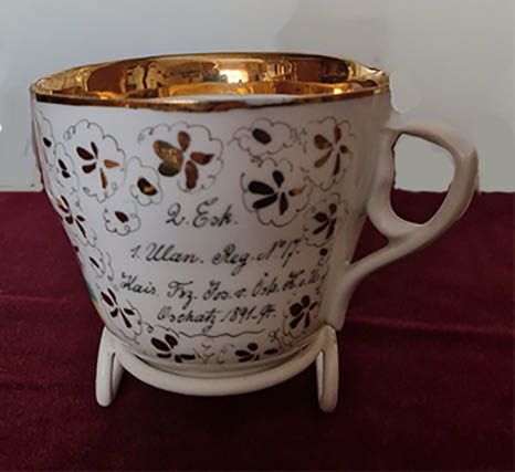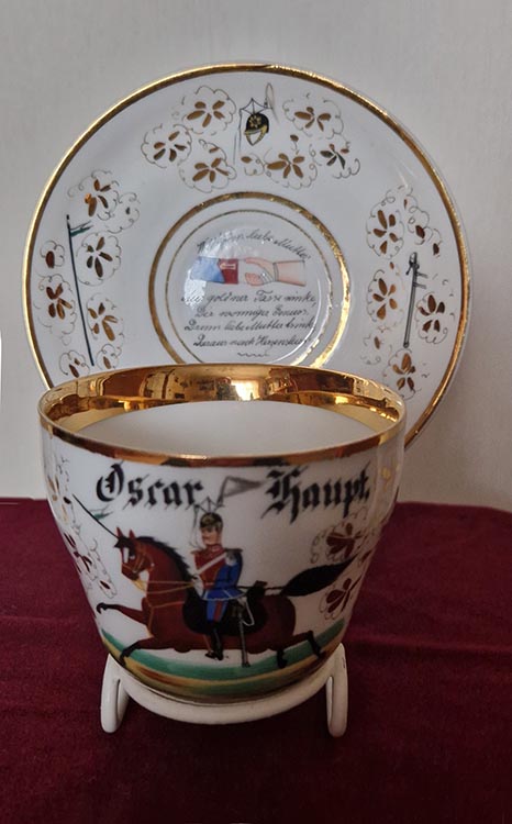 RESERVISTENTASSE VON OSCAR HAUPT Ulan der 2. Eskadron des 1 Ulanen-Regiments No. 17 Kaiser Franz Joseph von Österreich und König von Ungarn, Oschatz 1891 – 1894 „Zum Andenken an meine liebe Mutter“ „Willkommen liebe Mutter! Aus goldner Tasse winke der wonnige Genuss Deine liebe Mutter trinke daraus nach Herzenslust“